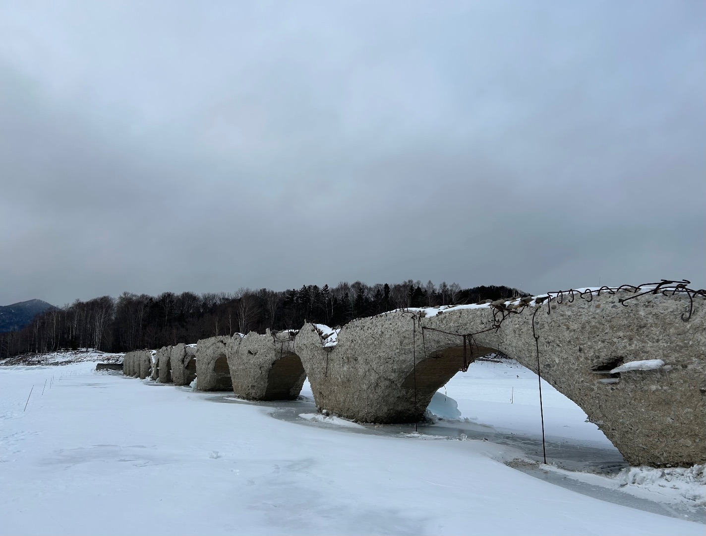 糠平湖にあるあと何年見られるか分からないタウシュベツ川橋梁、